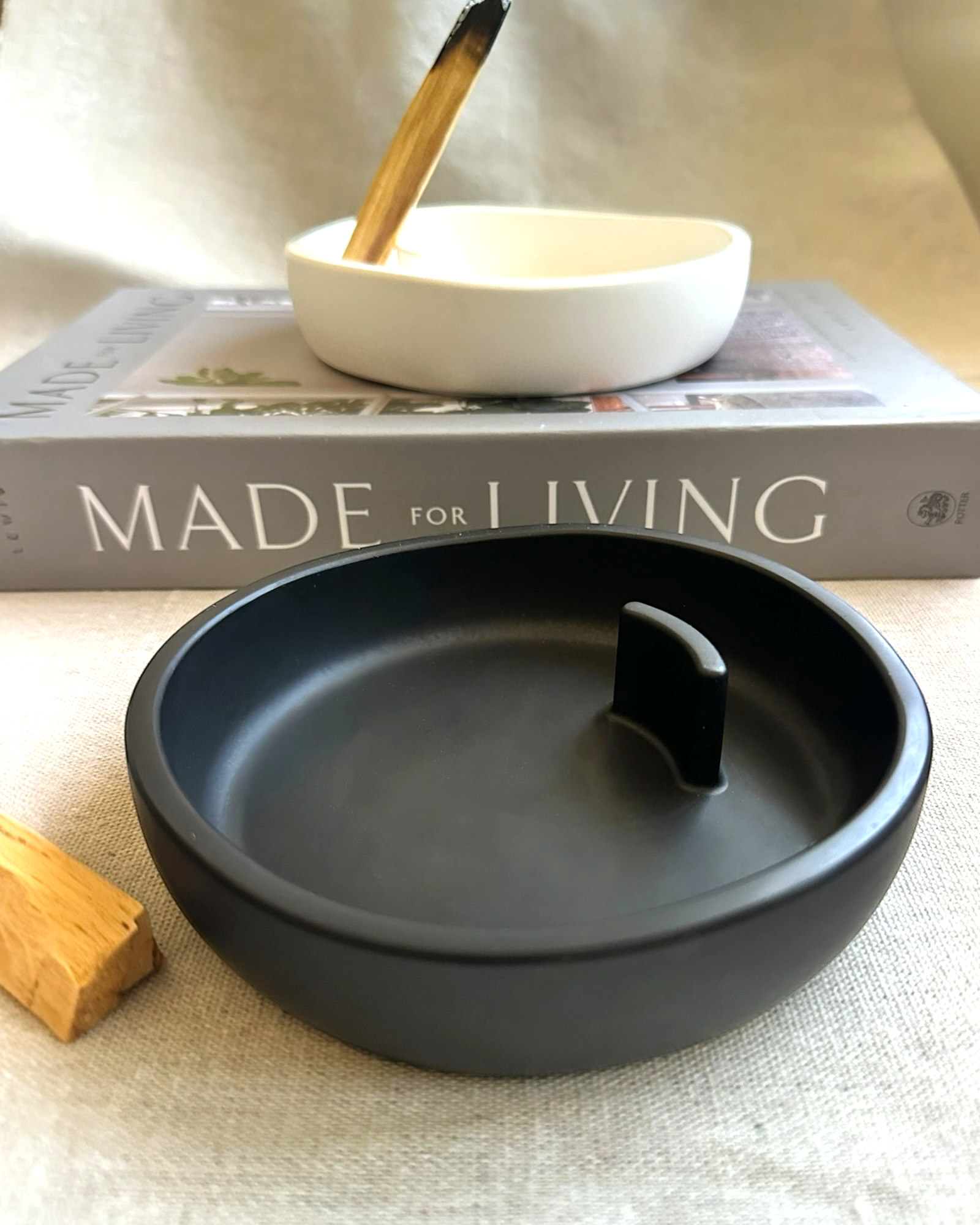 Die abgerundete Form und der dezent unregelmäßige Rand von Mesa verleihen der Moments-Kollektion einen organischen Charakter. Erhältlich in zwei Ausführungen, bietet sie unterschiedliche Ausdrucksformen der Ruhe: eine glatte Oberfläche mit minimalistischer, matter Eleganz oder eine haptische Variante mit steinähnlicher Präsenz und kunstvoller Wellenform am Rand. Mesa ist für Palo-Santo-Stäbchen oder Räucherkegel konzipiert und vermittelt ein Gefühl der Ausgeglichenheit, während es gleichzeitig praktisch für Momente der Besinnung ist.