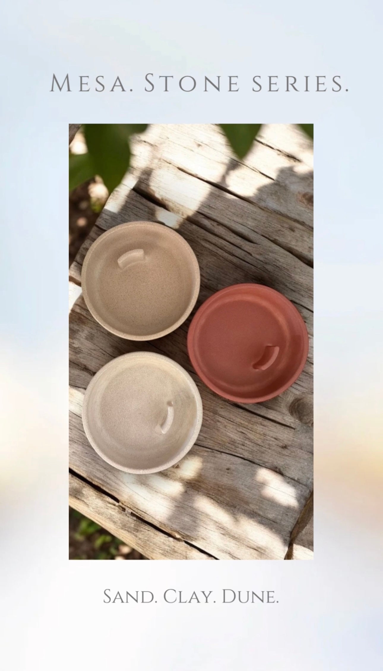 Mesa's rounded form and subtly irregular rim bring organic character to the Moments Collection. Available in two finishes, it offers different expressions of calm: a smooth surface with minimal matte elegance, or a tactile version with a more stone-like textured presence. Designed to hold palo santo sticks, Mesa creates a sense of balance, while offering practical function for moments of reflection.